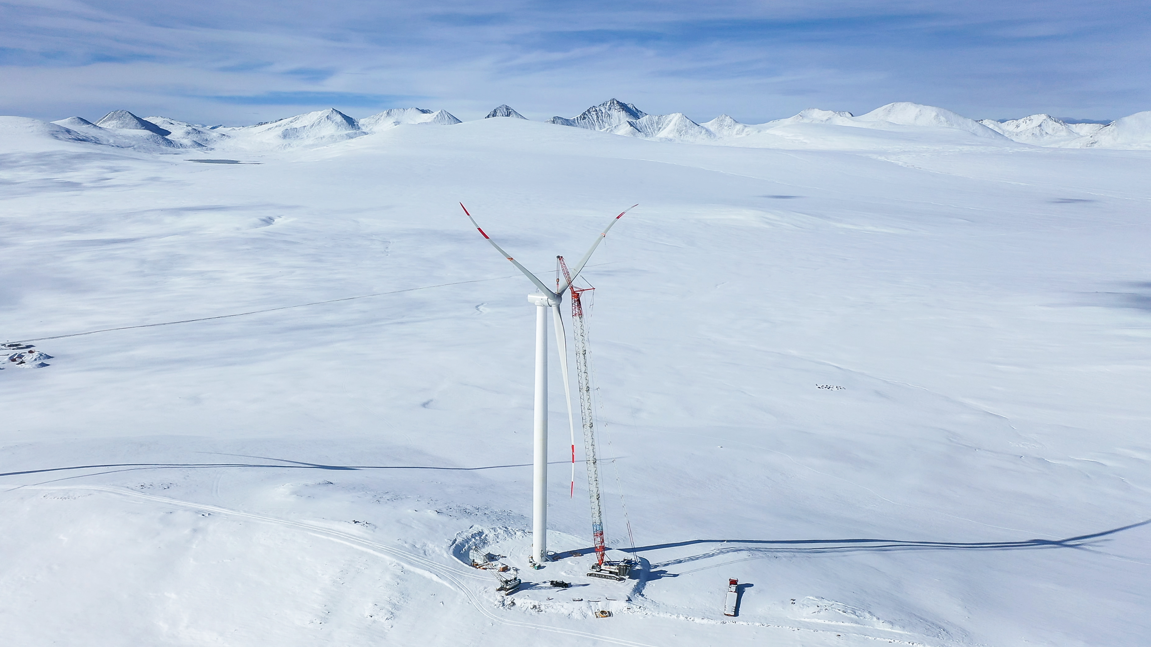 東方電氣集團(tuán)為超海拔風(fēng)電場——西藏措美縣哲古分散式風(fēng)電項目自主研制超高海拔風(fēng)電機(jī)組,其中一臺安裝機(jī)位達(dá)5060米,機(jī)組輪轂中心5150米。