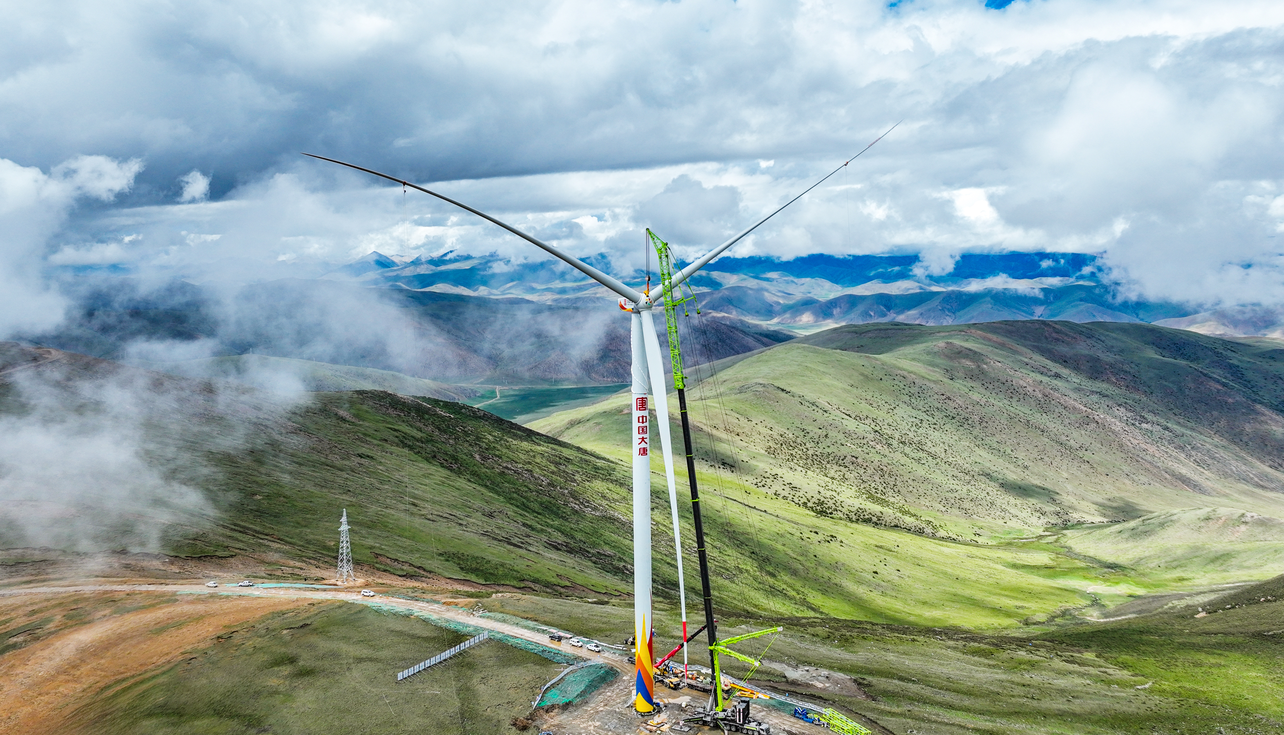 2024年7月10日,全球海拔最高的風電項目——大唐八宿10萬千瓦風電項目首臺機組順利完成吊裝。項目投產(chǎn)后,每年可新增清潔能源發(fā)電量2.23億千瓦時以上。