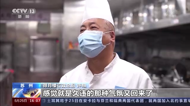 得月樓行政總廚 許翔:重新做松鼠桂魚的話,感覺那種久違的氣氛又回來了。19歲進得月樓,一直做到現(xiàn)在。今年是60歲,從業(yè)40多年吧,從來沒有碰到過像疫情這樣的事情,停業(yè)三個月。