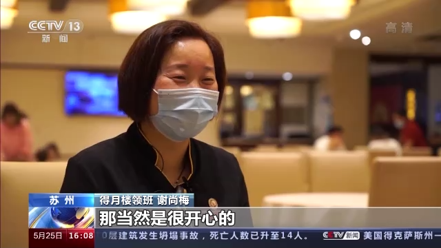 得月樓領(lǐng)班 謝尚梅:可以堂食可以上班了,當然是很開心的。這樣的話就多一份收入了,多點收入開支上面也要富余一點。
