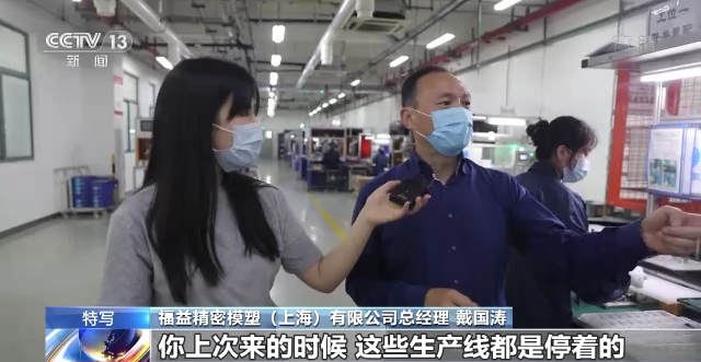 福益精密模塑(上海)有限公司總經(jīng)理 戴國濤:我們得到了政府部門的大力支持,從目前來看,我們的生產(chǎn)恢復還是非???。我們6月1日早上人進來,然后到晚班的時候我們已經(jīng)100%恢復了。