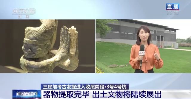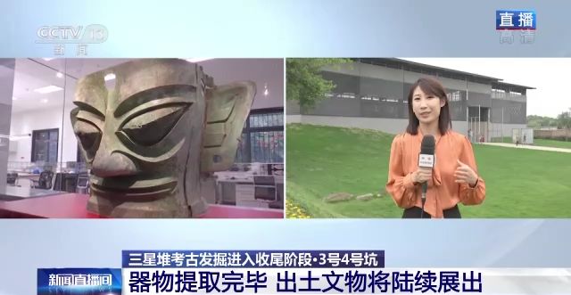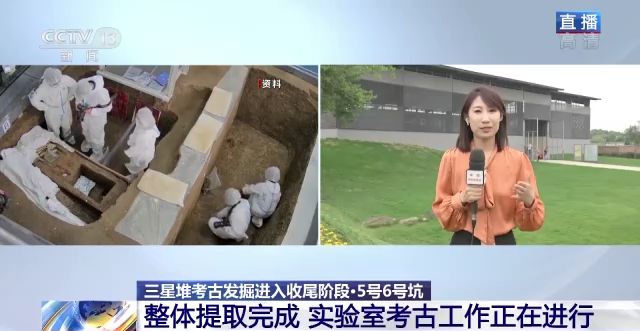 總臺(tái)央視記者 任梅梅:我身后就是三星堆遺址考古發(fā)掘大棚,目前6個(gè)新發(fā)現(xiàn)的祭祀坑考古發(fā)掘工作總體已經(jīng)開(kāi)始進(jìn)入收尾階段,其中3號(hào)坑和4號(hào)坑已經(jīng)完成現(xiàn)場(chǎng)的發(fā)掘工作,5號(hào)坑和6號(hào)坑整體提取進(jìn)入實(shí)驗(yàn)室發(fā)掘階段。