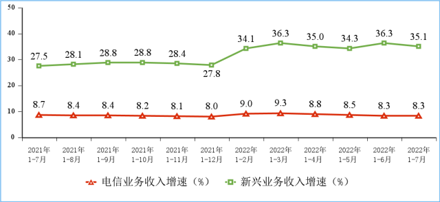 1—7月電信業(yè)務(wù)收入、總量同比分別增長8.3%和22.2%