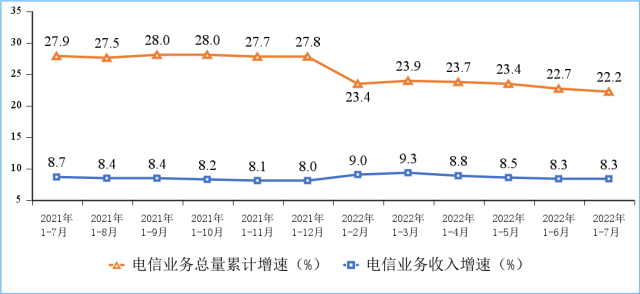 2022年1—7月份通信業(yè)經(jīng)濟運行情況