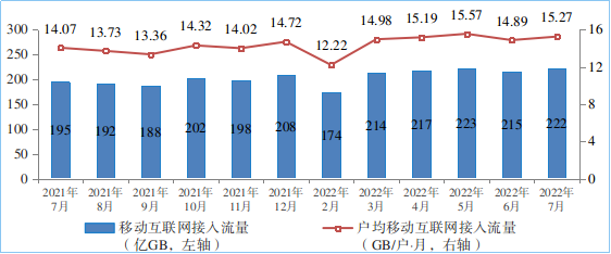 移動互聯(lián)網(wǎng)流量較快增長。1—7月份,移動互聯(lián)網(wǎng)累計流量達1463億GB,同比增長19.1%。截至7月末,移動互聯(lián)網(wǎng)用戶數(shù)達14.55億戶,比上年末凈增3955萬戶。7月當(dāng)月戶均移動互聯(lián)網(wǎng)接入流量(DOU)達到15.27GB/戶·月,同比增長8.5%,比上年底高0.55GB/戶·月。
