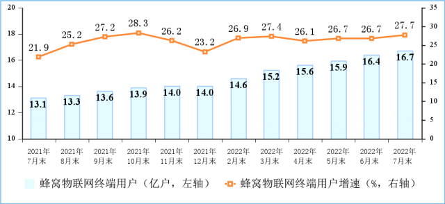 移動網(wǎng)絡(luò)連接終端中物聯(lián)網(wǎng)用戶占比近半,IPTV用戶數(shù)穩(wěn)步增加。截至7月末,三家基礎(chǔ)電信企業(yè)發(fā)展蜂窩物聯(lián)網(wǎng)終端用戶16.67億戶,比上年末凈增2.7億戶,占移動網(wǎng)終端連接數(shù)(包括移動電話用戶和蜂窩物聯(lián)網(wǎng)終端用戶)的比重已達49.9%。IPTV(網(wǎng)絡(luò)電視)總用戶數(shù)達3.68億戶,比上年末凈增1979萬戶。