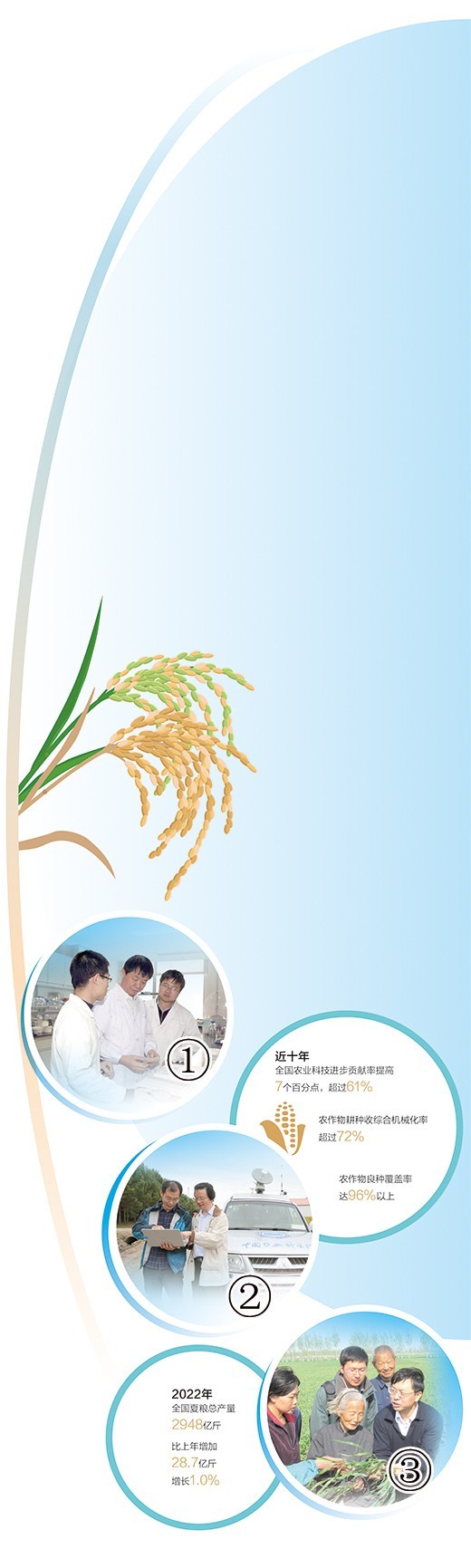 青紗帳里,玉米行行挺拔;汪汪水田,晚稻株株青綠……國家統(tǒng)計局?jǐn)?shù)據(jù)顯示:2022年全國夏糧總產(chǎn)量2948億斤,比上年增加28.7億斤,增長1.0%。這離不開廣大農(nóng)業(yè)科學(xué)家的持續(xù)努力。長期以來,廣大農(nóng)業(yè)科學(xué)家圍繞農(nóng)業(yè)農(nóng)村發(fā)展,把論文寫在大地上、把成果送進(jìn)億萬農(nóng)民家,為實現(xiàn)農(nóng)業(yè)穩(wěn)產(chǎn)增產(chǎn)、促進(jìn)農(nóng)民持續(xù)增收、打贏脫貧攻堅戰(zhàn)和推動鄉(xiāng)村振興作出重要貢獻(xiàn)。本版推出特別策劃,為您講述三位農(nóng)業(yè)科學(xué)家的故事。