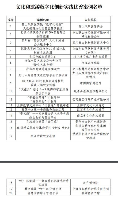 文旅部公布文化和旅游數(shù)字化創(chuàng)新實踐案例