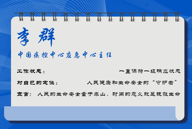 2019年12月31日一早,李群隨中國疾控中心工作組趕赴武漢,同時作為國家衛(wèi)生健康委專家組成員參加工作。他參加制定了《武漢不明原因的病毒性肺炎密切接觸者管理方案》和《應急監(jiān)測方案》。他提出的對密接人員進行14天醫(yī)學觀察,此后成為密接人員管理的通用做法。