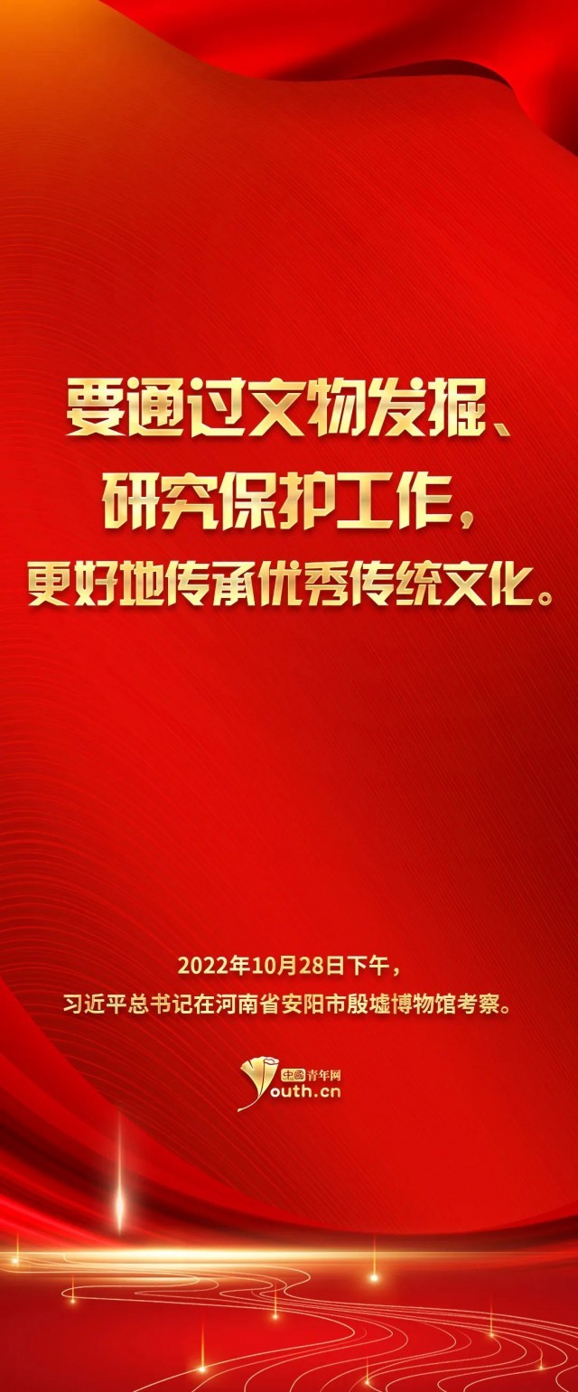 2022年10月28日,習(xí)近平總書(shū)記在黨的二十大勝利閉幕后就來(lái)到他向往已久的殷墟考察,并發(fā)表了重要講話?!耙笮娉鐾恋募坠俏臑槲覀儽4?000年前的文字,把中國(guó)信史向上推進(jìn)了約1000年?!绷?xí)總書(shū)記指出,中國(guó)的漢文字非常了不起,中華民族的形成和發(fā)展離不開(kāi)漢文字的維系。