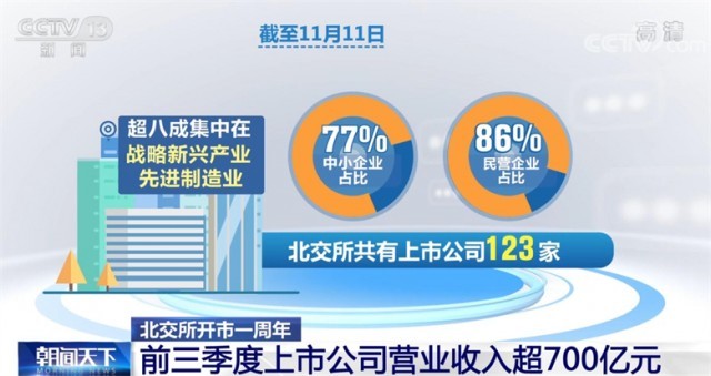 央視網(wǎng)消息:2021年11月15日,北交所正式鳴鐘開市。一年以來,北交所市場運行總體平穩(wěn),各項制度安排有效運轉,服務中小企業(yè)創(chuàng)新發(fā)展的能力持續(xù)提升。