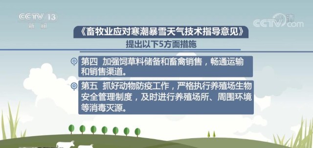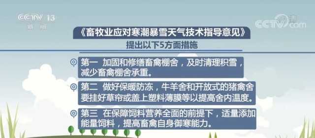 央視網(wǎng)消息:記者12月1日從農(nóng)業(yè)農(nóng)村部了解到,為了應(yīng)對(duì)寒潮天氣,保障畜禽安全過(guò)冬,最大程度降低災(zāi)害損失,農(nóng)業(yè)農(nóng)村部畜牧獸醫(yī)局組織畜牧生產(chǎn)專家編制了《畜牧業(yè)應(yīng)對(duì)寒潮暴雪天氣技術(shù)指導(dǎo)意見(jiàn)》,提出5方面措施指導(dǎo)生產(chǎn)。