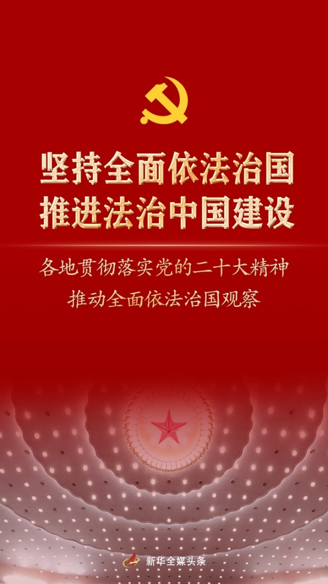 連日來,新華社記者在一線采訪看到,各地在堅持全面依法治國,推進法治中國建設的實際行動中,貫徹落實黨的二十大精神,全面推進國家各方面工作法治化。