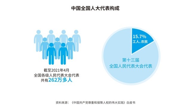 中國(guó)從本國(guó)國(guó)情實(shí)際出發(fā),不斷發(fā)展全過(guò)程人民民主,完善人民當(dāng)家作主制度體系,建立了人民代表大會(huì)制度、中國(guó)共產(chǎn)黨領(lǐng)導(dǎo)的多黨合作和政治協(xié)商制度、民族區(qū)域自治制度和基層群眾自治制度,為人民享有更加廣泛、更加充分、更加全面的民主權(quán)利奠定了堅(jiān)實(shí)的制度基礎(chǔ)。