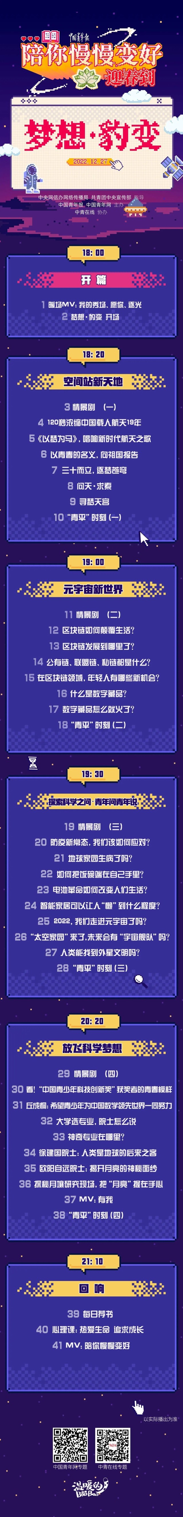 在這場聯(lián)播節(jié)目中,4位年輕記者將通過自己的經(jīng)歷和故事,和大家一起回顧2022年與科技創(chuàng)新有關(guān)的瞬間,重溫那些帶給我們“夢想”和“豹變”的激情時(shí)刻。聯(lián)播由空間站新天地、元宇宙新世界、探索科學(xué)之問、放飛科學(xué)夢想等四大篇章組成,重磅環(huán)節(jié)“探索科學(xué)之問”將聯(lián)合北京市科協(xié),共同推出聯(lián)名款“青年問青年說”,青年科學(xué)家和大學(xué)生一起盤點(diǎn)這些熱點(diǎn)科技問題:防疫新常態(tài),我們?cè)撊绾螒?yīng)對(duì)?極端天氣頻發(fā),地球家園生病了?2022年,我們走進(jìn)元宇宙了嗎?“太空家園”來了,未來會(huì)不會(huì)有“宇宙艦隊(duì)”…… 12月27日,我們不見不散。