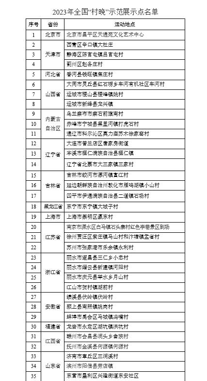 中國經(jīng)濟網(wǎng)北京1月10日訊(記者 魏金金)如今,“村晚”已經(jīng)成為豐富基層群眾節(jié)日文化生活、傳承年俗文化和培育鄉(xiāng)村文明的新風尚。記者從文化和旅游部官網(wǎng)獲悉,2023年全國“村晚”示范展示點名單已出爐,北京市昌平區(qū)天通苑文化藝術(shù)中心等74個活動地點入選。