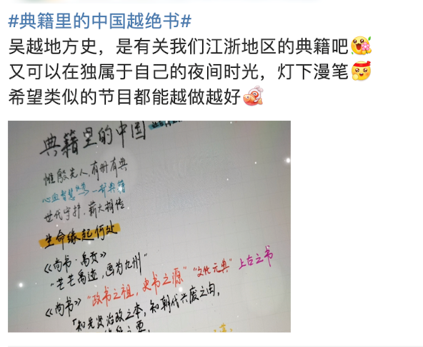 大學(xué)時讀的這部書,令總臺臺長記憶深刻。在提議策劃推出《典籍里的中國》第二季時,臺長建議關(guān)注《越絕書》這個選題。古越人絕地求生、奮斗不息的精神,值得今人傳承弘揚(yáng)!
