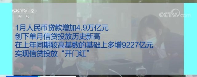 1月人民幣貸款增加4.9萬億元,創(chuàng)下單月信貸投放歷史新高,在上年同期較高基數(shù)的基礎上多增9227億元,實現(xiàn)信貸投放“開門紅”。