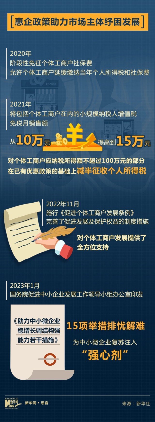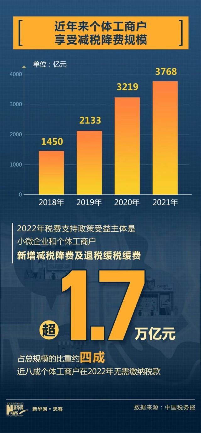 煥發(fā)個體經(jīng)濟(jì)生機(jī)活力,離不開稅收“輸血給氧”。近年來,各地區(qū)、各部門也出臺了一系列幫扶個體工商戶等小微市場主體發(fā)展的政策措施,精準(zhǔn)扶困。