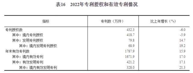 全年授予專利權(quán)432.3萬(wàn)件,比上年下降6.0%;PCT專利申請(qǐng)受理量7.4萬(wàn)件。截至年末,有效專利1787.9萬(wàn)件,其中境內(nèi)有效發(fā)明專利328.0萬(wàn)件。每萬(wàn)人口高價(jià)值發(fā)明專利擁有量9.4件。全年商標(biāo)注冊(cè)617.7萬(wàn)件,比上年下降20.2%。全年共簽訂技術(shù)合同77萬(wàn)項(xiàng),技術(shù)合同成交金額47791億元,比上年增長(zhǎng)28.2%。我國(guó)公民具備科學(xué)素質(zhì)的比例達(dá)到12.93%。