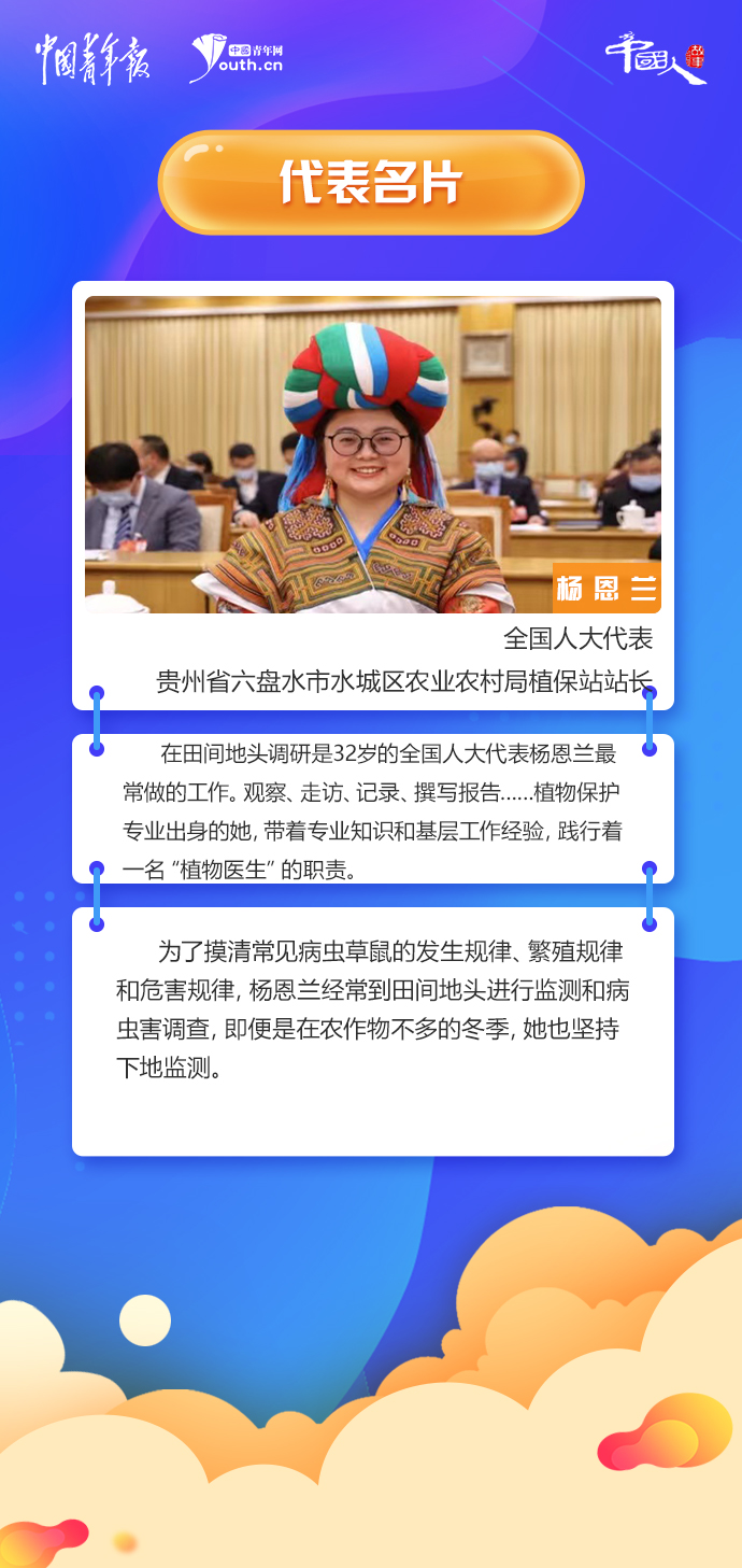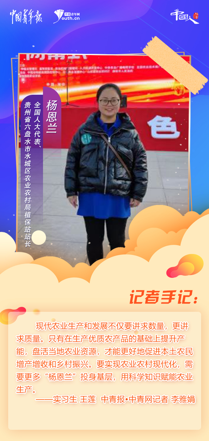 采訪楊恩蘭時(shí),正值六盤水市兩會(huì)召開,楊恩蘭忙得不可開交,白天開完代表大會(huì)后,晚上又馬不停蹄地回到酒店接受采訪。從學(xué)業(yè)聊到工作,從愛情聊到生活,這名90后出身農(nóng)村,到廣州接受高等教育,又放棄在廣州穩(wěn)定的工作,回到成長的地方。她常說,自己研究生階段所學(xué)專業(yè)更適合在基層做農(nóng)業(yè)推廣,只有深入到田間、與農(nóng)戶交流,才能最大程度地發(fā)揮所長。