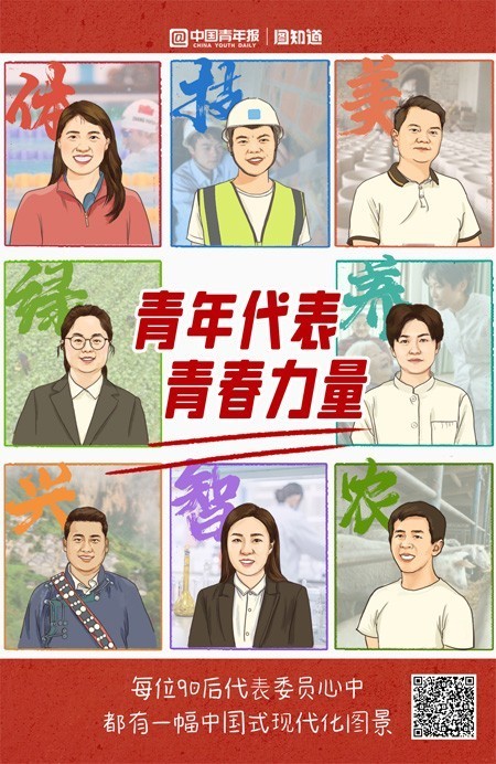 3月8日,《圖知道》可視化欄目為十四屆全國人大代表中的90后“定制”了一組漫畫圖,將他們的建議與個(gè)人“履歷”趣味展示。