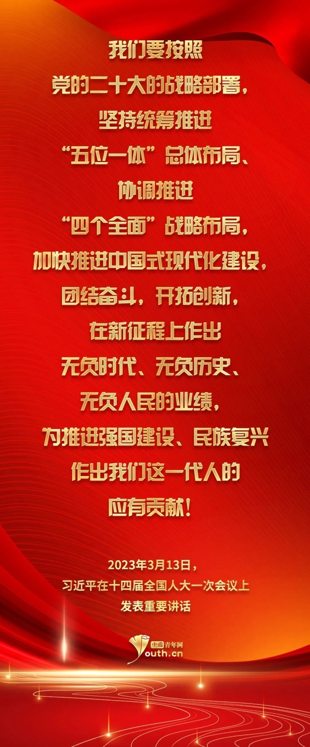 近代以來,中華民族久經(jīng)磨難,中國共產(chǎn)黨帶領(lǐng)中國人民實現(xiàn)了從站起來、富起來再到強起來的歷史性飛躍。成就的取得,是我們黨和億萬人民勠力同心奮斗出來的。一代人有一代人的長征,一代人有一代人的使命與擔當。新征程上,我們要堅持以習近平新時代中國特色社會主義思想為指導(dǎo),學思踐悟,知行合一,用黨的創(chuàng)新理論武裝頭腦,堅定不移聽黨話、跟黨走,立志做有理想、敢擔當、能吃苦、肯奮斗的新時代好青年,為強國建設(shè)、民族復(fù)興添磚加瓦,貢獻力量。