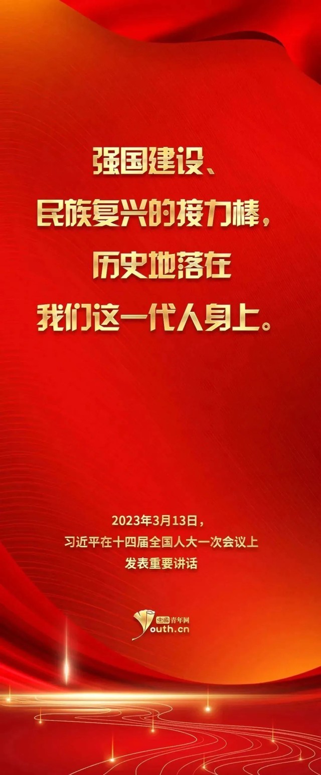 國家主席習近平在十四屆全國人大一次會議上指出,“從現(xiàn)在起到本世紀中葉,全面建成社會主義現(xiàn)代化強國、全面推進中華民族偉大復(fù)興,是全黨全國人民的中心任務(wù)。強國建設(shè)、民族復(fù)興的接力棒,歷史地落在我們這一代人身上?!?/p>