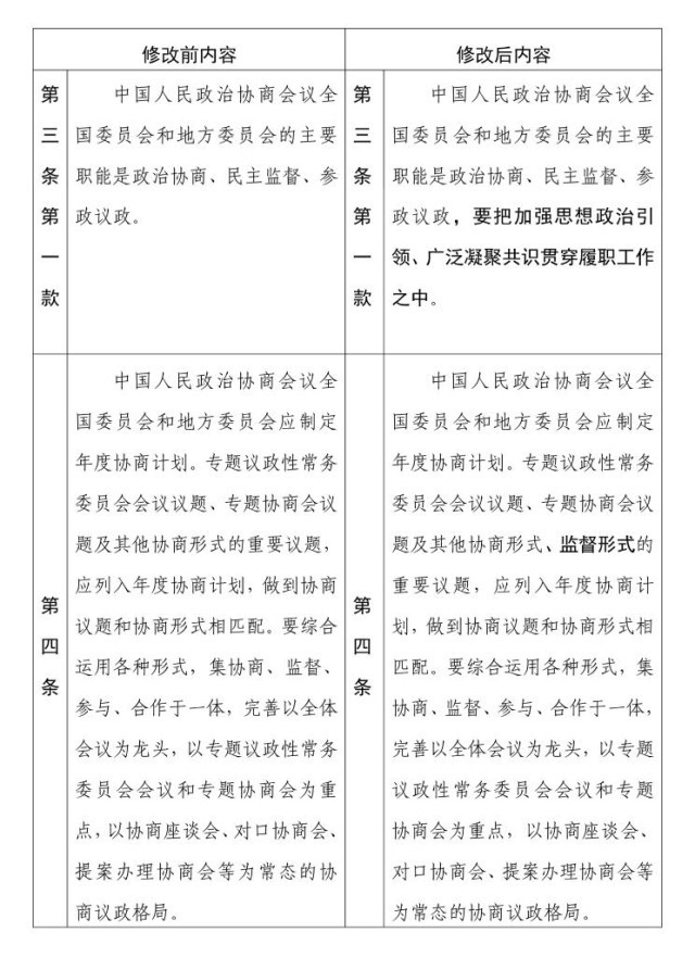 中國(guó)人民政治協(xié)商會(huì)議章程 修改前后內(nèi)容對(duì)照表