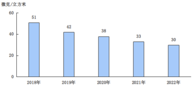 圖9 2018-2022年細(xì)顆粒物(PM2.5)年均濃度