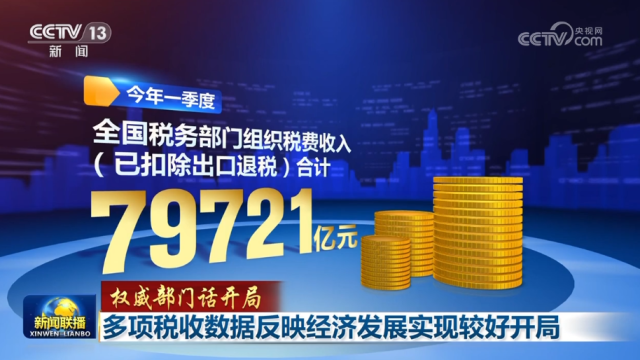 一季度,全國稅務(wù)部門組織稅費(fèi)收入合計79721億元,其中,稅收收入46756億元,同比增長0.5%,實現(xiàn)良好開局。