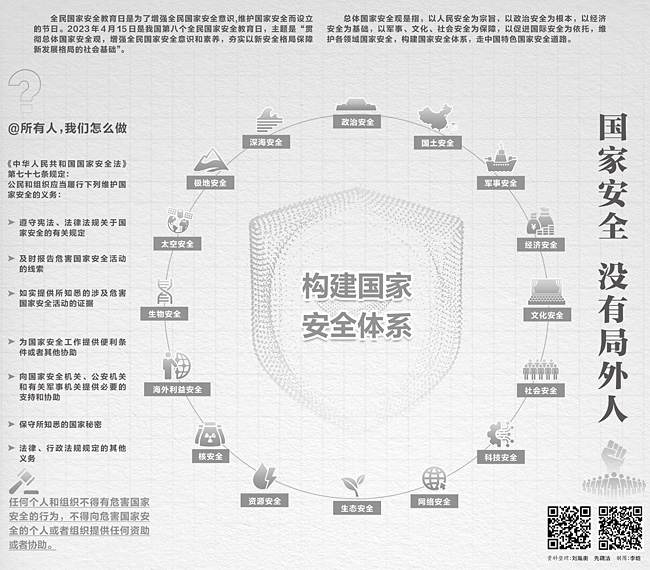 全民國家安全教育日是為了增強全民國家安全意識,維護國家安全而設(shè)立的節(jié)日。2023年4月15日是我國第八個全民國家安全教育日,主題是“貫徹總體國家安全觀,增強全民國家安全意識和素養(yǎng),夯實以新安全格局保障新發(fā)展格局的社會基礎(chǔ)”。