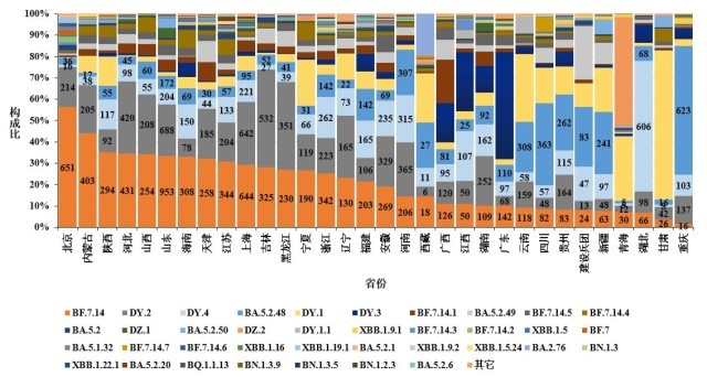 圖4-2 各省份新冠病毒變異監(jiān)測情況