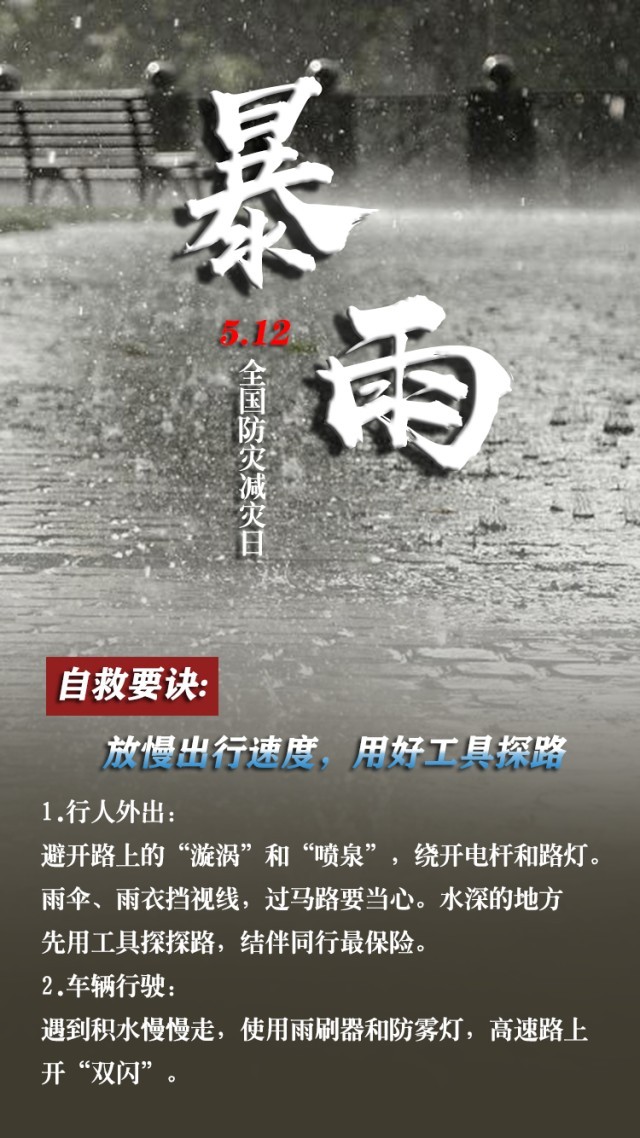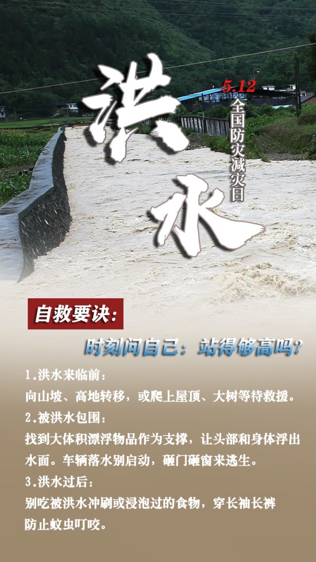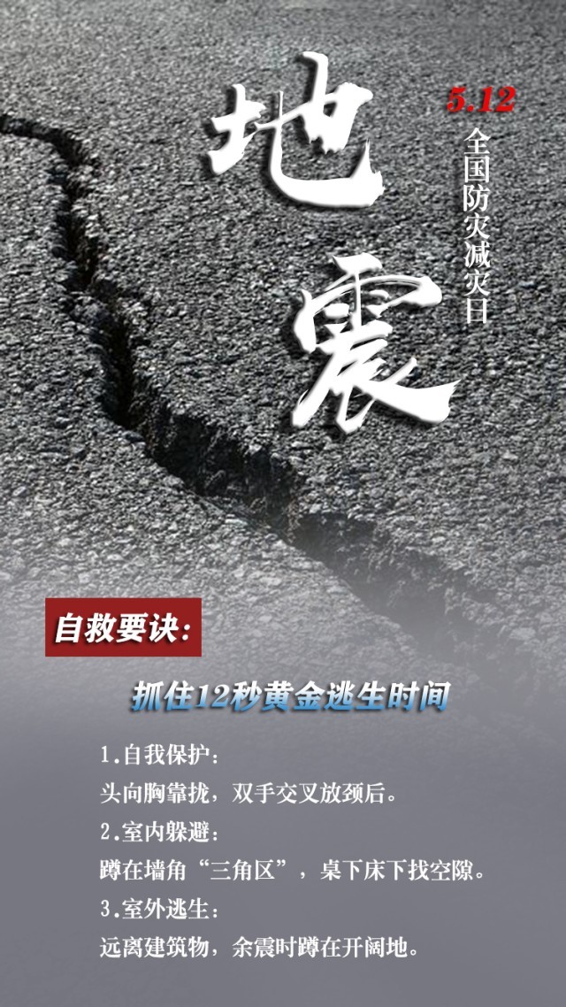 今天是第15個全國防災減災日。自然災害隨時可能發(fā)生,及時自救才更有生存希望。地震來時,如何抓住12秒黃金逃生時間?發(fā)生火災時,如何躲避火場濃煙?暴雨天如何安全出行?沙塵天氣如何做好防護……這份實用避險口訣簡單好記,請速速收藏。