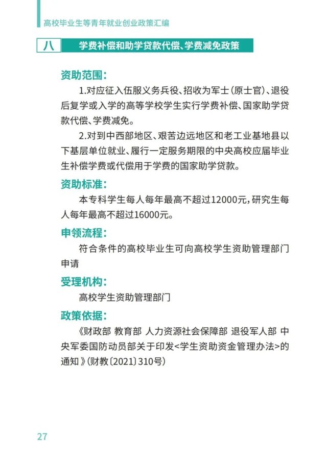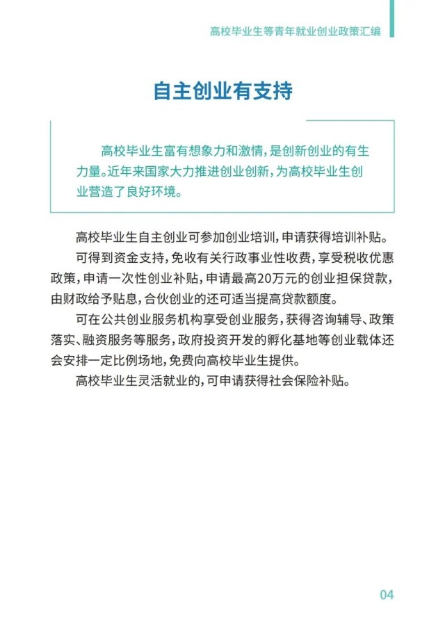 為貫徹落實黨中央、國務院關于高校畢業(yè)生就業(yè)創(chuàng)業(yè)工作的決策部署,教育部高校學生司會同相關部門編印了《高校畢業(yè)生等青年就業(yè)創(chuàng)業(yè)政策匯編》,幫助廣大高校畢業(yè)生和用人單位知曉政策、享受政策,更好助力高校畢業(yè)生就業(yè)創(chuàng)業(yè)。和教育小微一起看——
