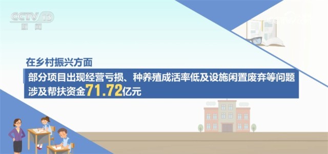在鄉(xiāng)村振興方面,部分項(xiàng)目出現(xiàn)經(jīng)營(yíng)虧損、種養(yǎng)殖成活率低及設(shè)施閑置廢棄等問(wèn)題,涉及幫扶資金71.72億元。