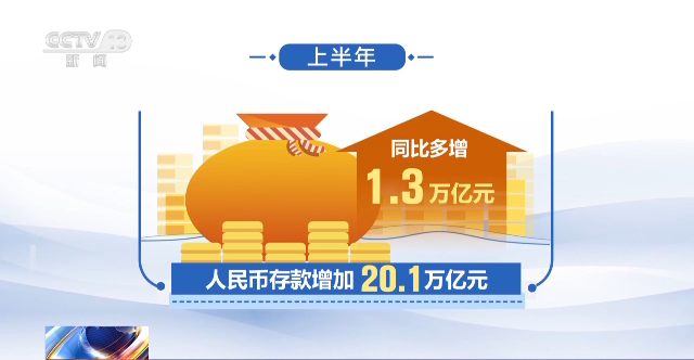 此外數(shù)據(jù)顯示,上半年人民幣存款增加20.1萬(wàn)億元,同比多增1.3萬(wàn)億元。