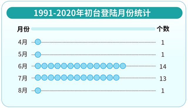 1991-2020年初臺登陸月份統(tǒng)計 丁茜制圖