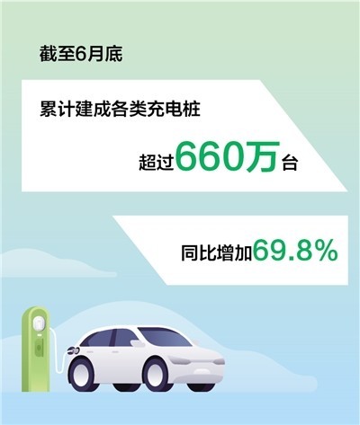 農(nóng)村地區(qū)適度超前建設(shè)充電基礎(chǔ)設(shè)施,只是我國充電樁建設(shè)的一個縮影。目前,我國已建成世界上數(shù)量最多、輻射面積最大、服務(wù)車輛最全的充電基礎(chǔ)設(shè)施體系。中國電動汽車充電基礎(chǔ)設(shè)施促進(jìn)聯(lián)盟發(fā)布的最新數(shù)據(jù)顯示,截至6月底,全國累計建成各類充電樁超過660萬臺,同比增加69.8%。