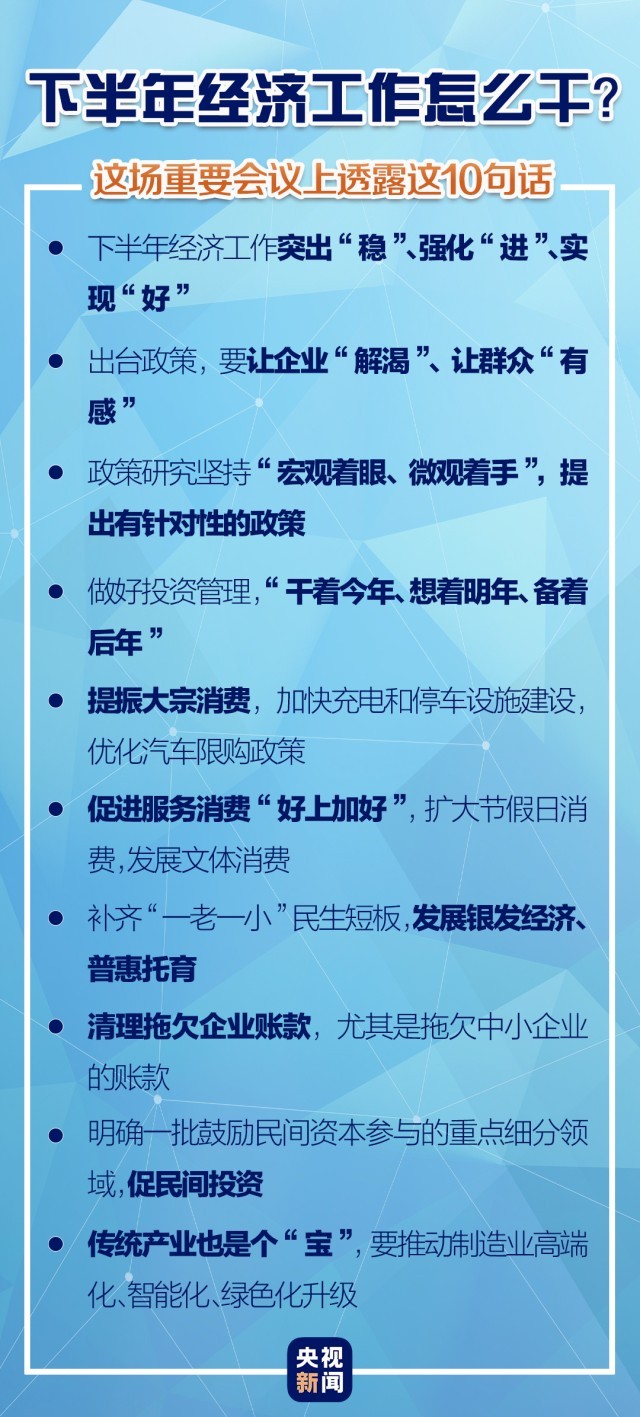 下半年經(jīng)濟(jì)怎么干?這場重要會議上透露這10句話