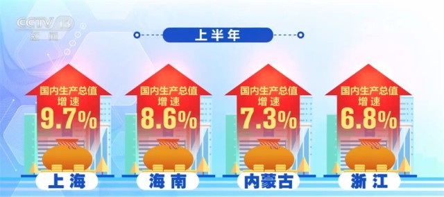從上半年各省份的國(guó)內(nèi)生產(chǎn)總值增速看,江蘇、浙江等15個(gè)省份增速超過(guò)全國(guó)5.5%的增速,其中,上海、海南、內(nèi)蒙古和浙江等省份增速均在6.8%以上,廣東、江蘇、山東等21個(gè)省份的國(guó)內(nèi)生產(chǎn)總值增速超過(guò)了各自一季度的增速,經(jīng)濟(jì)增長(zhǎng)恢復(fù)勢(shì)頭明顯。