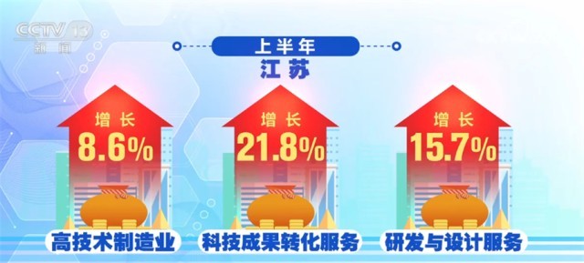 江蘇、浙江、安徽把創(chuàng)新當(dāng)做制造業(yè)升級(jí)的著力點(diǎn)。上半年,江蘇高技術(shù)制造業(yè)增長8.6%,科技成果轉(zhuǎn)化服務(wù)、研發(fā)與設(shè)計(jì)服務(wù)分別增長21.8%和15.7%。浙江上半年,科學(xué)研究和技術(shù)服務(wù)業(yè)投資增長52.2%。規(guī)模以上工業(yè)中,新產(chǎn)品產(chǎn)值率已經(jīng)達(dá)到41.4%,并在持續(xù)提高。安徽上半年裝備制造業(yè)增加值增長了15.3%,汽車產(chǎn)業(yè)增長42.6%,光伏產(chǎn)業(yè)增長了一倍。