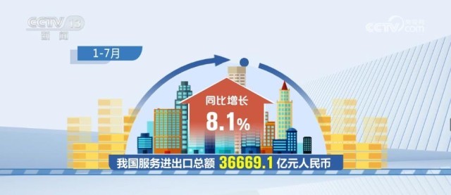 數(shù)據(jù)顯示,1月—7月,我國服務(wù)進(jìn)出口總額36669.1億元人民幣,同比增長8.1%。