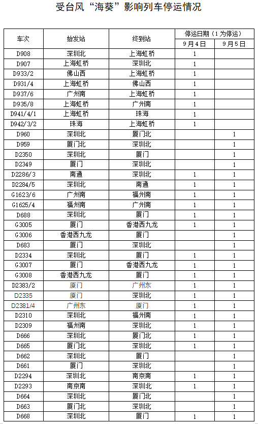 受臺(tái)風(fēng)“??庇绊?鐵路部門(mén)停運(yùn)途經(jīng)杭深鐵路部分旅客列車(chē)