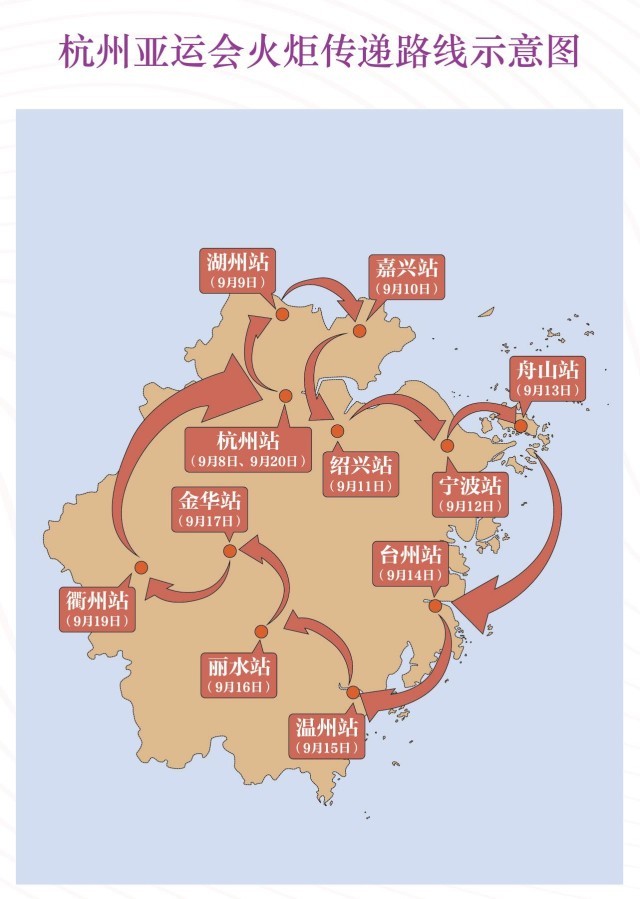 杭州首日的傳遞結(jié)束之后,就將開啟浙江全省的傳遞,遍布11個(gè)地市,9月20日將回到杭州并完成最后一站傳遞。