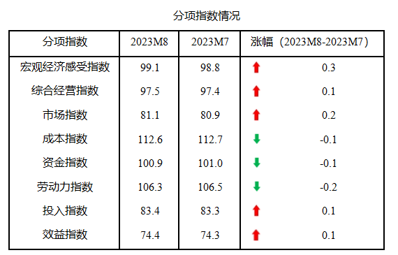 中國中小企業(yè)發(fā)展指數(shù)的分項(xiàng)指數(shù)中,宏觀經(jīng)濟(jì)感受指數(shù)、綜合經(jīng)營指數(shù)、市場指數(shù)、投入指數(shù)都是連續(xù)三個(gè)月上升,分行業(yè)指數(shù)中的交通運(yùn)輸指數(shù)則實(shí)現(xiàn)了連續(xù)四個(gè)月上升。社會服務(wù)業(yè)和住宿餐飲指數(shù)則是連續(xù)兩個(gè)月上升。