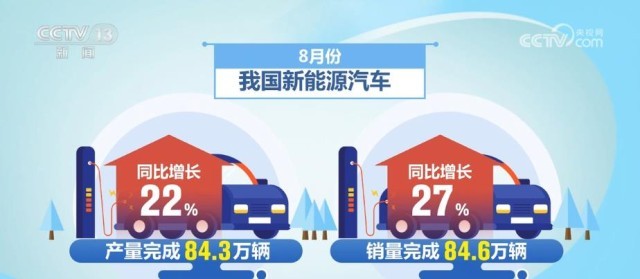 中國汽車工業(yè)協(xié)會的數(shù)據(jù)顯示,8月份,我國新能源汽車產(chǎn)銷量分別完成84.3萬輛和84.6萬輛,同比分別增長22%和27%,市場占有率達到32.8%。1月—8月,新能源汽車產(chǎn)銷分別完成543.4萬輛和537.4萬輛,同比分別增長36.9%和39.2%。