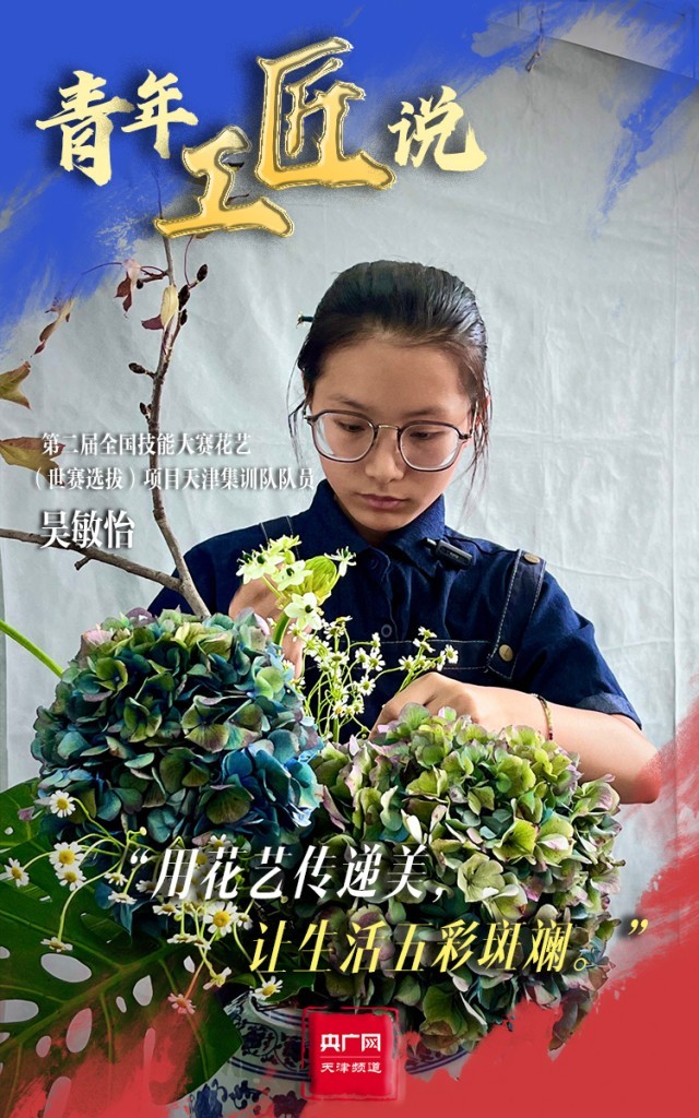 青春,是以工匠精神筑就美好生活的底色。走進(jìn)位于天津農(nóng)學(xué)院花藝(世賽選拔)項目的集訓(xùn)現(xiàn)場,生機(jī)盎然、芬芳馥郁,天津集訓(xùn)隊隊員吳敏怡正在挑選花材和花器,為每一件作品賦予一番獨特的意境。從2023年5月以來,吳敏怡每天要與花相伴12個小時,在審美及技術(shù)水平上的提高也讓她很有成就感。對于本次比賽,她也充滿期待:“我的目標(biāo)是起碼能拿一個優(yōu)勝獎,也是為了突破自己,讓自己的花藝技術(shù)更上一層樓?!彼f,她也將用花藝傳遞生活中的美,讓生活五彩斑斕。