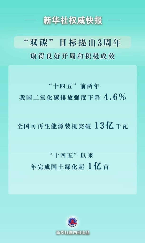 “雙碳”目標提出3周年取得積極成效