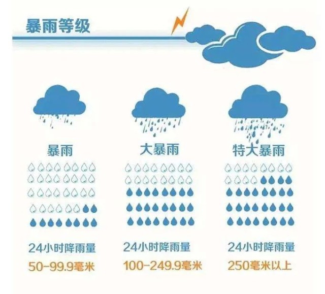 如果24小時降水量大于等于100毫米,那便達(dá)到了“大暴雨”等級;如果24小時降水量大于等于250毫米,就達(dá)到了“特大暴雨”等級。